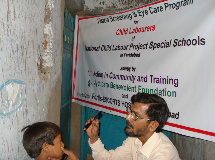 The following ‘National Child Labour Programme’ (NCPL) school's children were screened for eye-health. 07/04/09 Sector 10, NCPL Schools # 18 and 19. 01/05/09 Sector 9, NCPL Schools # 15 and 16 29/04/09 Sector 10, NCPL Schools # 17 03/06/09 Sector 9, The Rising, NCPL - two schools.