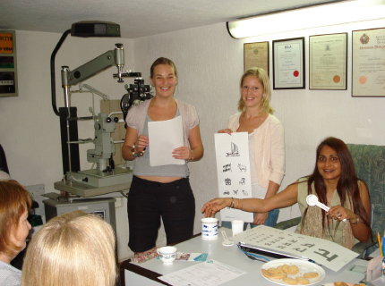 The children were put through several tests by Isha Dave (Optometrist) with the help of assistants Tejal Vora (Ophthalmic Assistant), Annie Pavard (Optician).