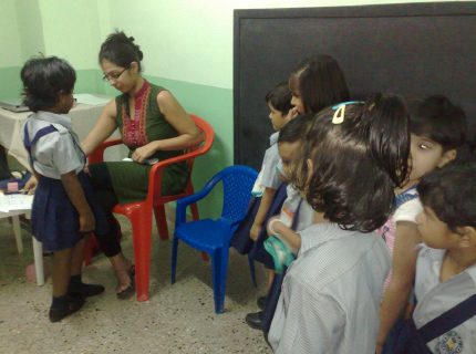 Basic Vision Screening was conducted by volunteers from Mumbai Connexion at the Agripada school run by Mumbai Mobile Creche.