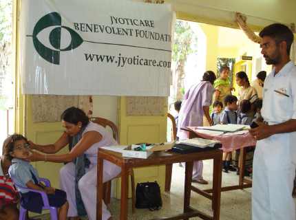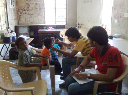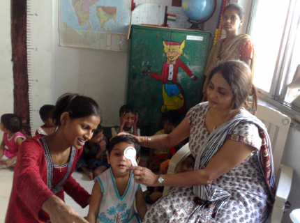 JCBF and H. R. college 'Basic Vision Screening' programme in 2010 conducted at 'Mumbai Mobile Creche' school.