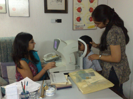 H.R. College student Nirali helping Optometrist Isha Dave at her clinic.