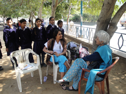 Mrs. Jyoti Dave-Singh and Mrs. Savita Datt of ‘Prakash Deep’ discussing future projects with NCLP schools in sector 9 Faridabad, Haryana.
