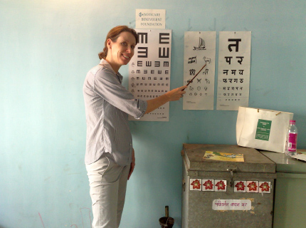 Optometrist Isha Dave doing further examination to prescribe spectacles.