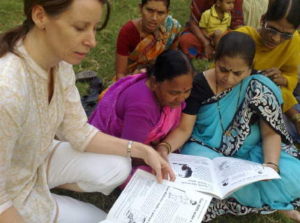 Master trainer Cecilia educating the teachers of Mumbai Mobile Creche to use the information in the interactive books to teach the children on eye-care and eye-health.