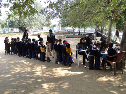 JCBF and ACT tied up with an NGO named ‘Prakash Deep’ in Faridabad, Haryana,, to conduct basic Vision Screening at NCLP (National Child Labour Project) school in Sector 9. This school has four classes which are conducted in an open-air square in Faridabad.