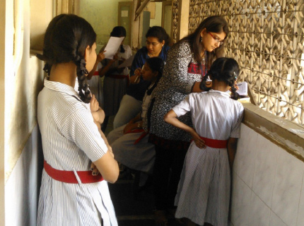 Vision screening by HR college student Group 5 at Akanksha run Kalachowki school.