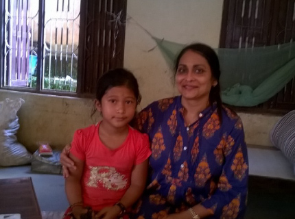 JCBF Trustee Jyoti Dave with 10 year Old student Chhiring Dolma Tamang who helped with keeping the school children under control during the vision screening.