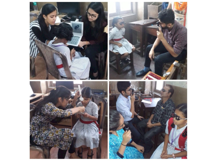 - Team of Optometry students supervised by Optometrist Vishwa Sanghavi from Lotus School of Optometry carried out the screening.