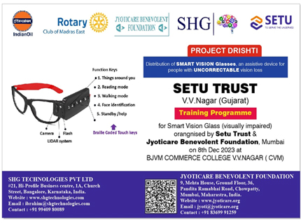 JCBF joined hands with Setu Seva Trust to service the visually impaired community of Gujarat for supply of SVG