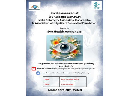 - World Sight Day was celebrated on 10th October 2024 in Collaboration with MOA (Maha Optometry Association)